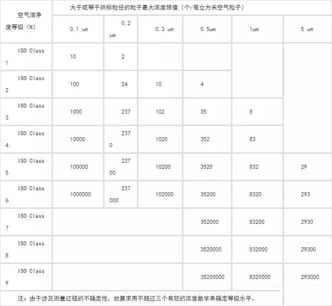 1.4 對空氣潔凈度等級標準 空氣潔凈度劃分為九個等級,如圖所示。
